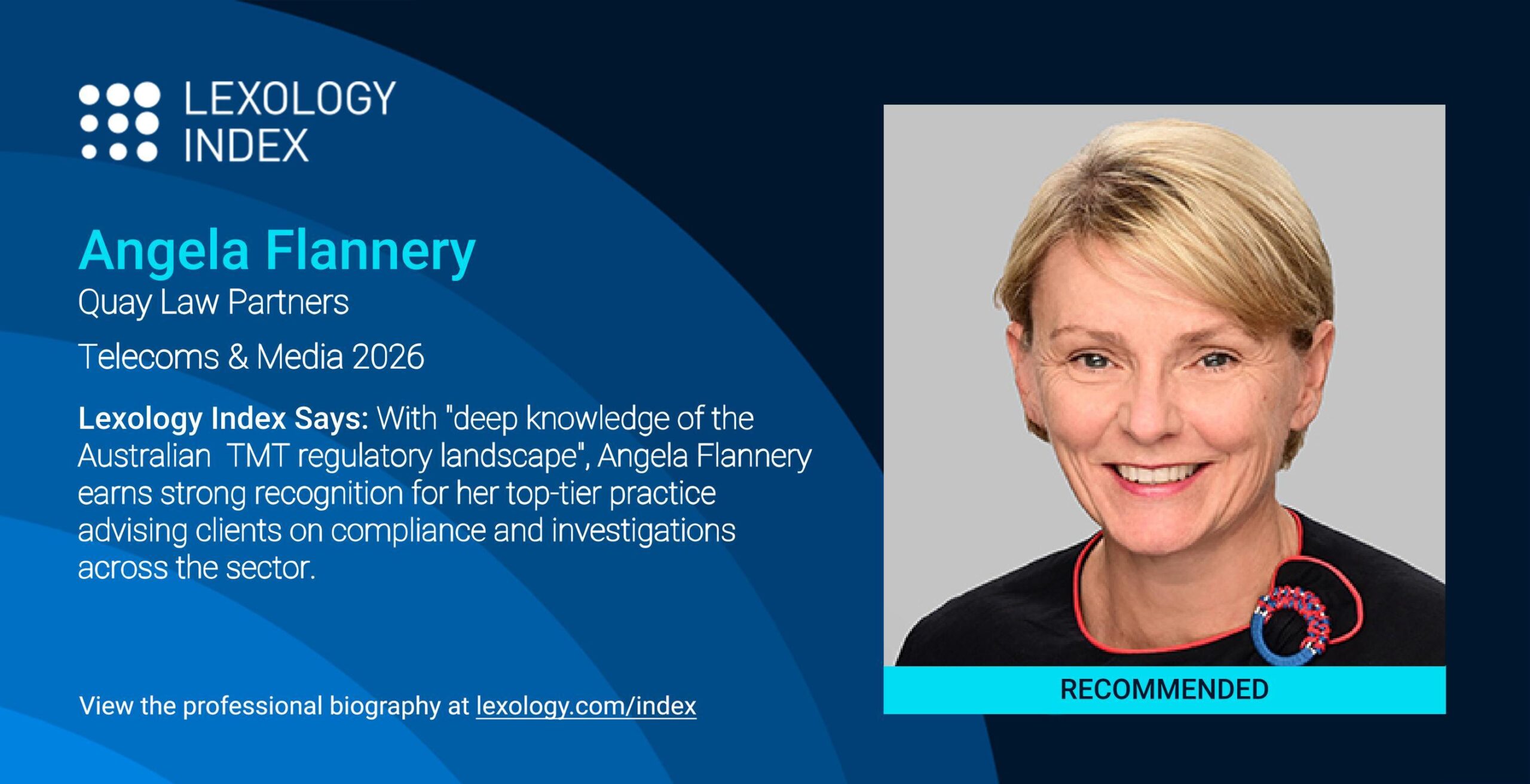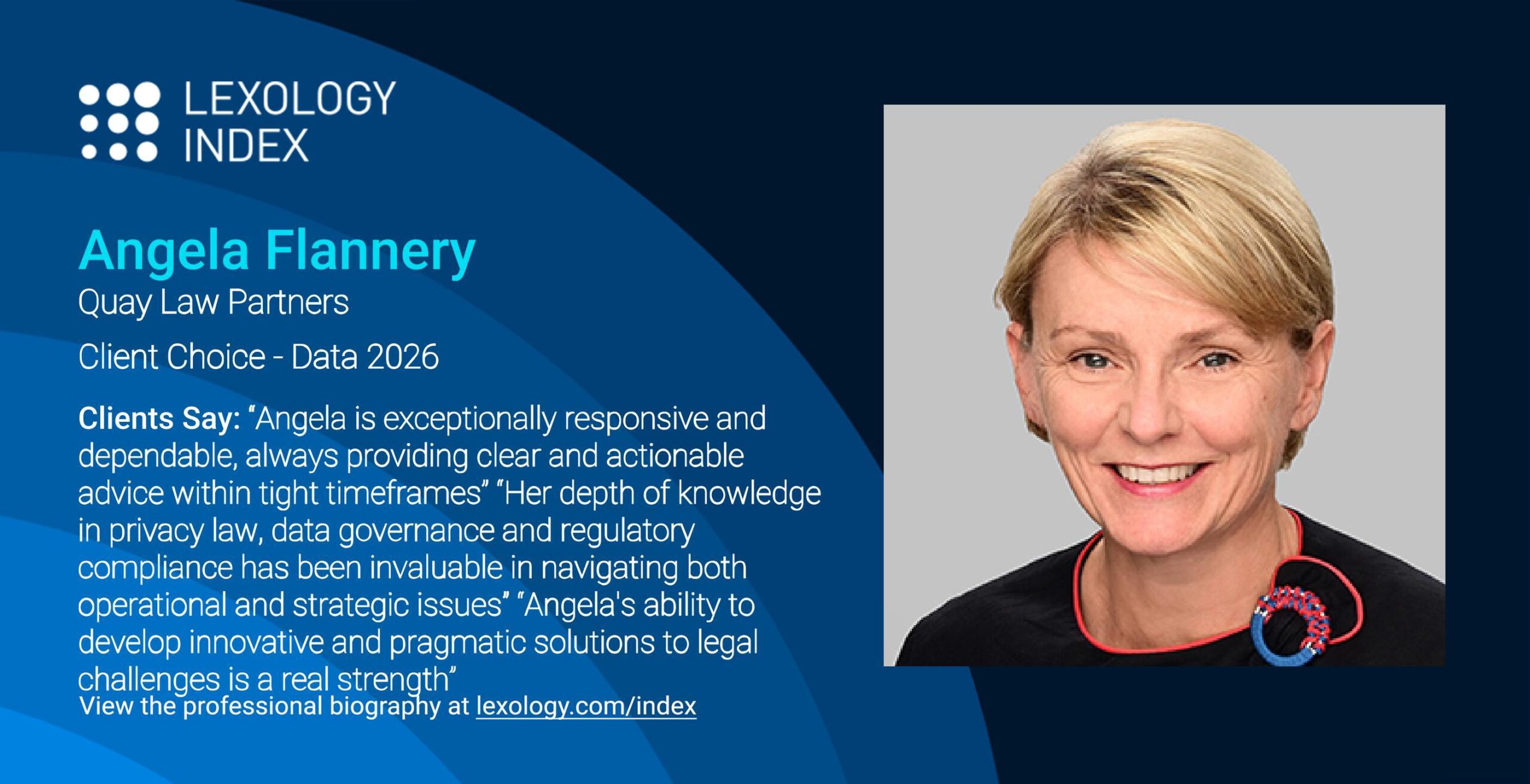 Angela Flannery has received recognition as Client Choice in Data and Recommended in Telecoms and Media legal sectors. Lexology research describes Angela as a world leading lawyer with a thorough, deeply knowledgeable and pragmatic approach.
